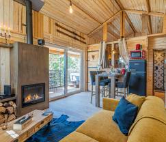 Een gezellig huisje met een prachtig uitzicht om helemaal tot rust te komen en te ontspannen. Warm en uitnodigend, het huisje had alles wat we nodig hadden. De jacuzzi buiten op het terras was geweldig. De ligging is zeer rustig. Heel vriendelijke eigenaars. We hebben van ons weekend genoten!