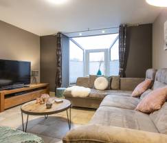 On imagine volontiers ce gîte pour deux familles : chacune profite de son intimité tout en ayant des espaces de vie très conviviaux à partager. Entre la détente au wellness, un plongeon dans la piscine et l'amusement autour du kicker, cette maison vous réserve de beaux moments en perspective !