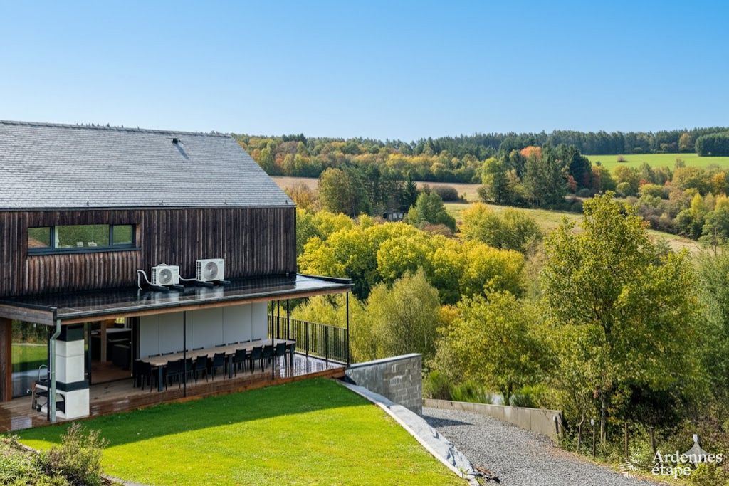 Cette magnifique maison de vacances pour 20 personnes à Vencimont est l'endroit idéal pour les familles, les groupes d'amis avec enfants ou les couples qui souhaitent profiter ensemble d'un séjour inoubliable en Ardenne. La maison est construite de manière unique sur un terrain fortement en pente, ce qui crée plusieurs niveaux et une vue à couper le souffle depuis le spacieux salon. La nature semble littéralement entrer ici, ce qui vous fait vous sentir complètement en harmonie avec l'environnement.