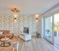 Le salon est confortablement aménagé et constitue un endroit parfait pour se détendre après une journée bien remplie. Depuis le salon, vous avez accès à une magnifique terrasse privée avec une vue imprenable sur les environs. Ici, vous pouvez profiter d'un délicieux repas préparé sur le barbecue tout en admirant le coucher du soleil.